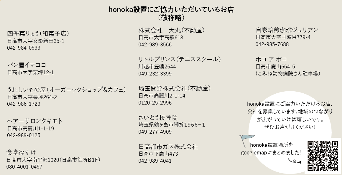 「honoka」は新事務所とhonoka設置店舗さんに置いてあります。 ぜひご来店いただいた際は、お気軽にお取りください。