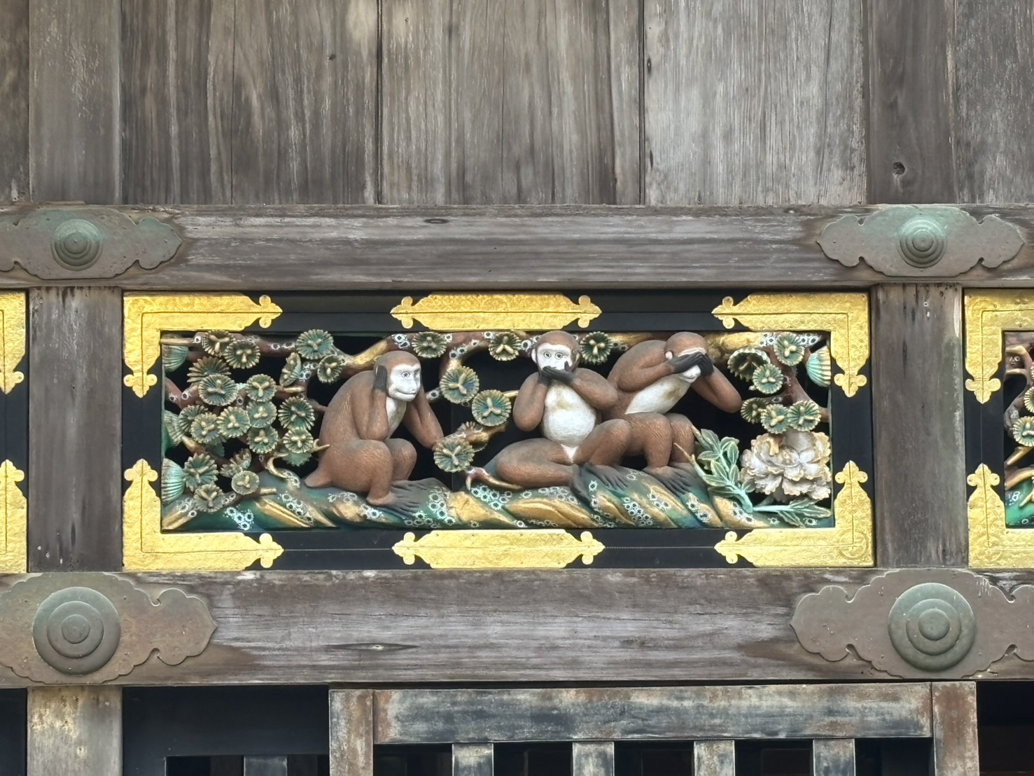 もちろん、あの有名な「見ざる言わざる聞かざる」の三猿も見てきましたよ。